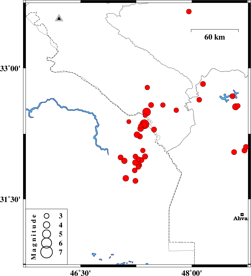 | 2008/08/28 | 02:43:57.5 | 07:13:57.5 | 31.87 | 47.28 | 37 | ML3 | 91 km South of Dehloran, Ilam Province | ||