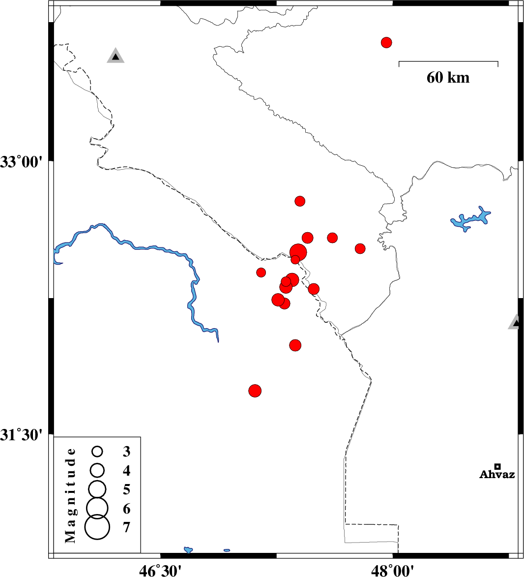 2008/09/08 15:51:45.7 20:21:45.7 32.7847.414 ML3 16 km East of Dehloran, Ilam Province
