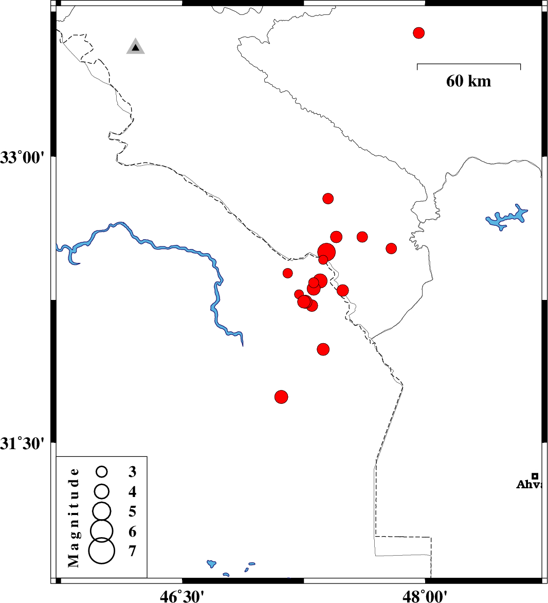 | 2008/09/08 | 15:51:45.7 | 20:21:45.7 | 32.78 | 47.4 | 14 | ML3 | 16 km East of Dehloran, Ilam Province | ||