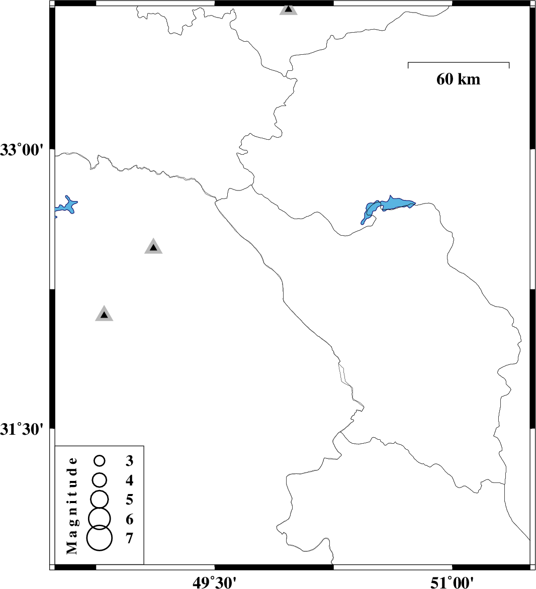 | 2008/09/09 | 09:29:12.4 | 13:59:12.4 | 32.26 | 49.99 | 14 | ML2.6 | 26 km South-West of Chelgard, Chaharmahal Bakhtiari Province |