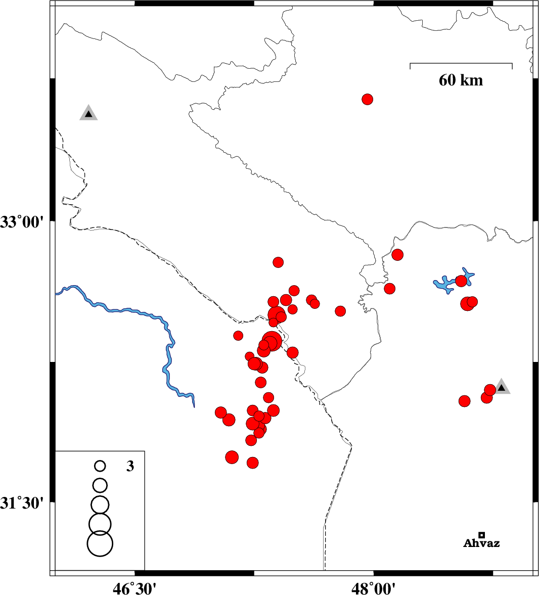 2008/08/28 02:43:57.5 07:13:57.5 31.8747.2837 ML3 91 km South of Dehloran, Ilam Province