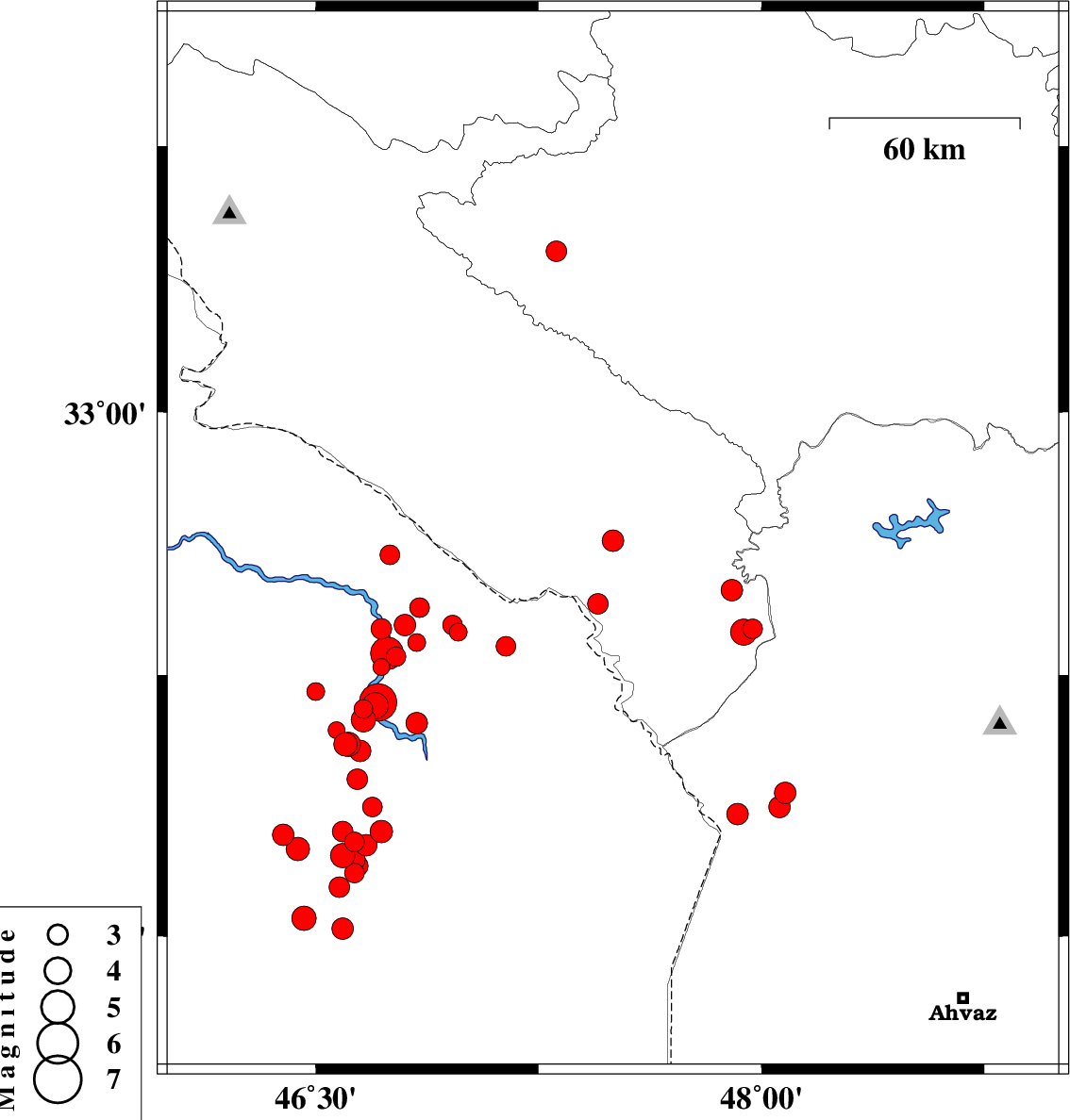 2008/09/17 23:13:52.1 03:43:52.1 32.5347.4929 ML2.7 28 km South-East of Dehloran, Ilam Province