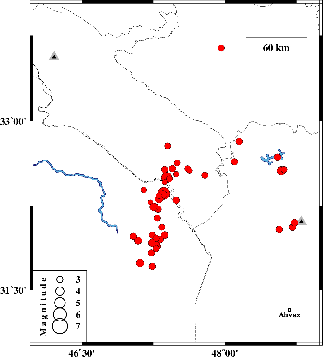 2008/08/28 | 02:43:57.5 | 07:13:57.5 | 31.87 | 47.28 | 37 | ML3 | 91 km South of Dehloran, Ilam Province | ||