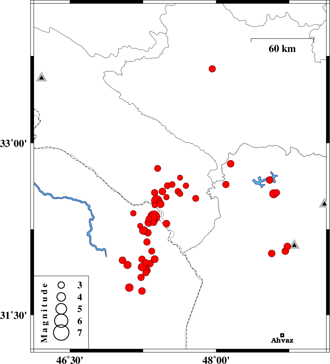 2008/08/28 02:43:57.5 07:13:57.5 31.8747.2837 ML3 91 km South of Dehloran, Ilam Province