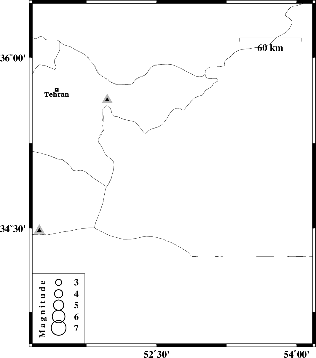 2008/09/24 | 19:35:32.3 | 23:05:32.3 | 34.97 | 52.67 | 46 | ML2.7 | 41 km South-East of Garmsar, Semnan Province |