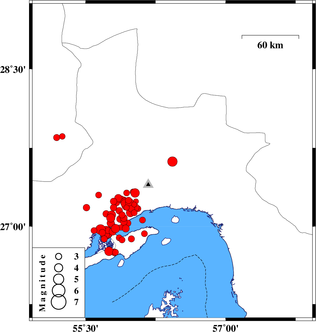 2008/09/17 17:43:50.3 22:13:50.3 27.255.944 ML4.6 33 km West of Bandar-e abbas, Hormozgan Province