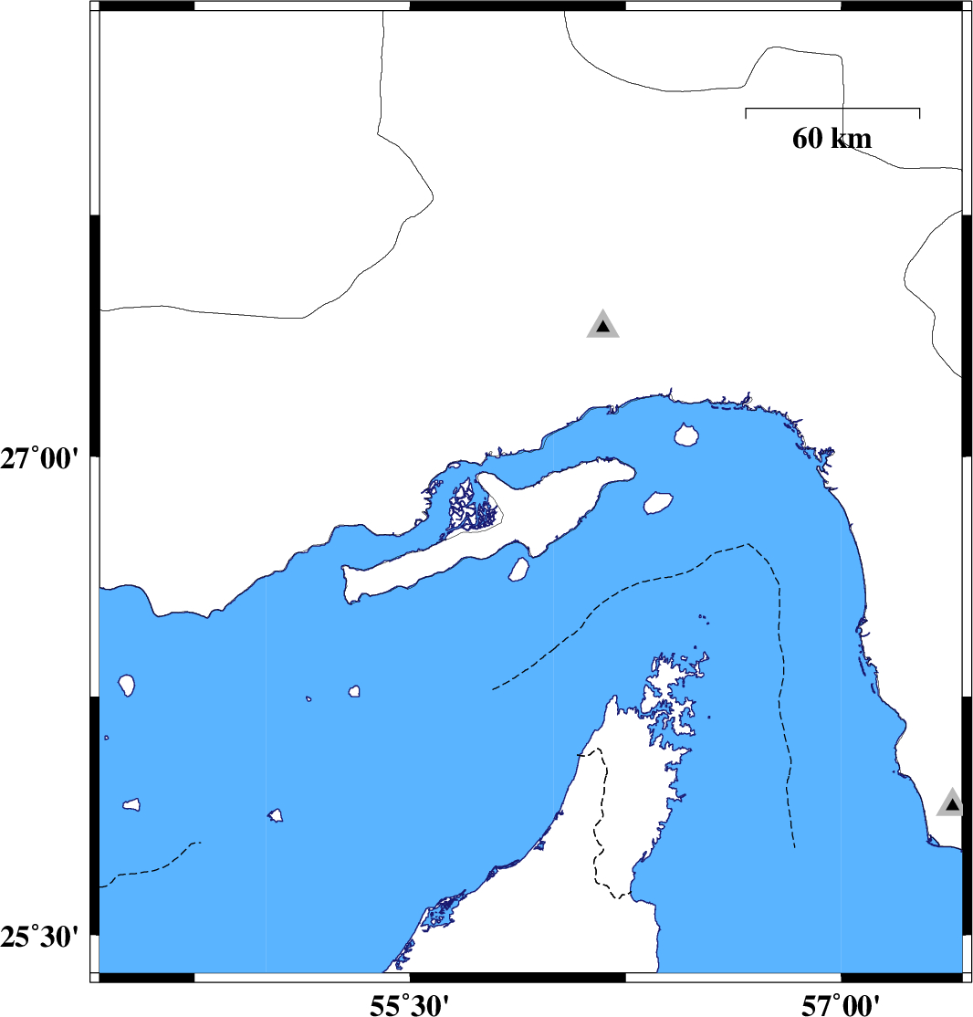 2008/09/22 | 04:39:40.9 | 08:09:40.9 | 26.98 | 55.93 | 10 | ML3.5 | Persian Gulf, 33 km West of Qeshm |