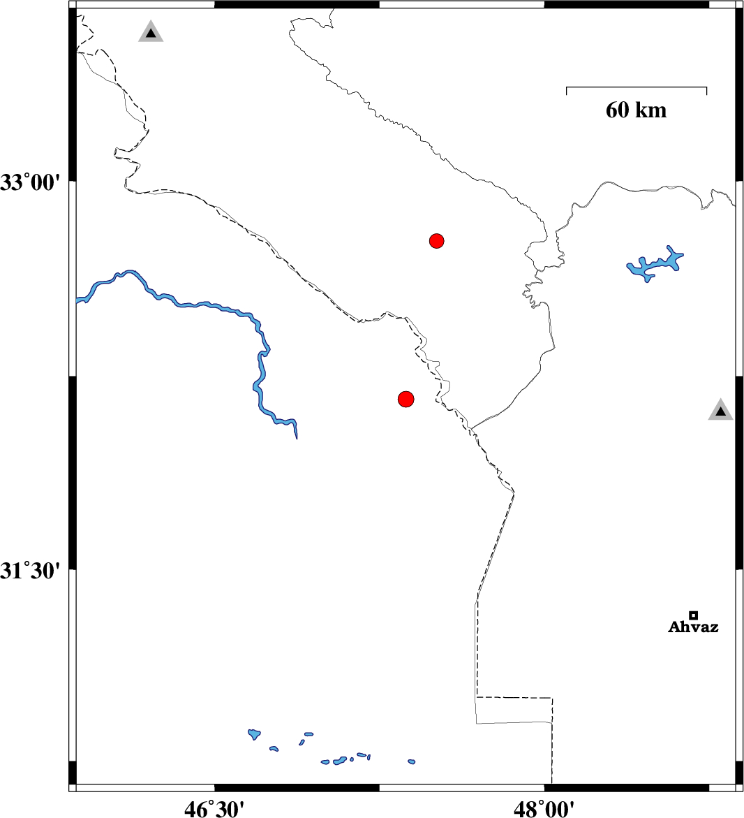 | 2008/09/23 | 13:58:40.0 | 17:28:40.0 | 32.77 | 47.51 | 15 | ML3 | 18 km South of Abdanan, Ilam Province |