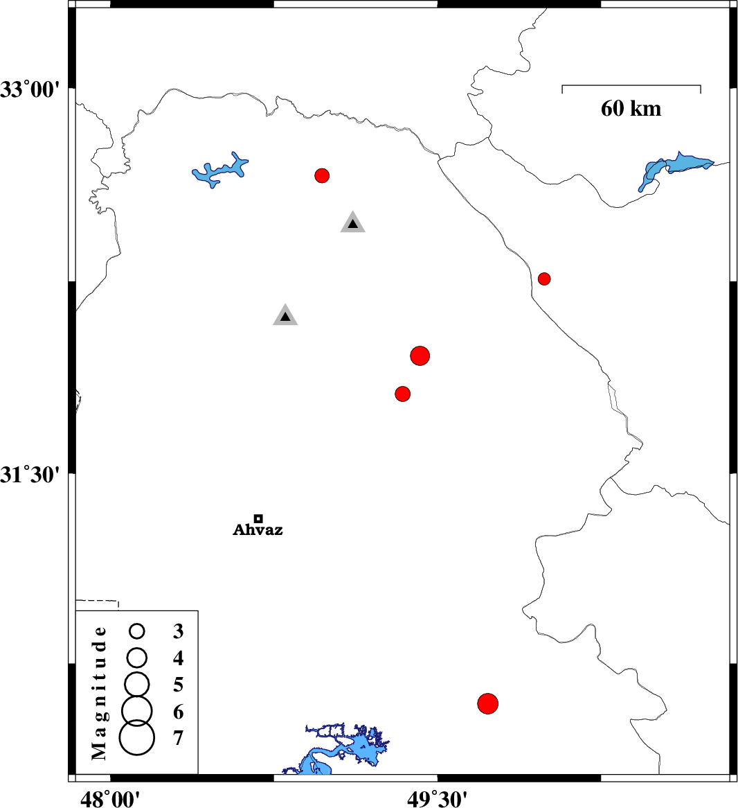 | 2008/10/02 | 20:31:48.7 | 00:01:48.7 | 31.96 | 49.42 | 15 | ML4 | 11 km East of Masjed Soleyman, Khoozestan Province | ||