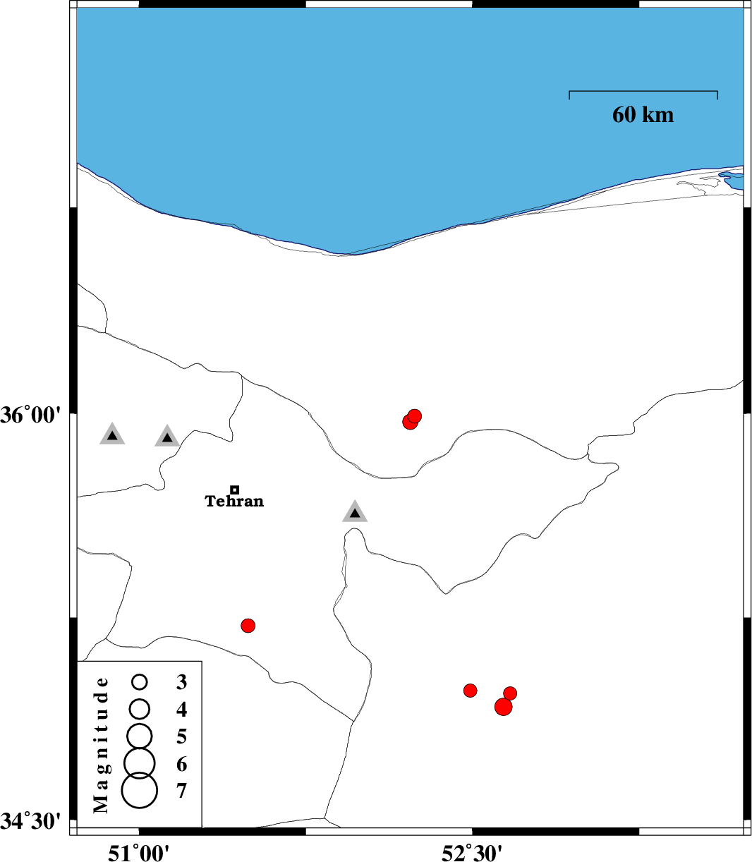 2008/10/04 21:53:34.6 01:23:34.6 35.9952.247 ML2.8 34 km North-East of Damavand, Tehran Province