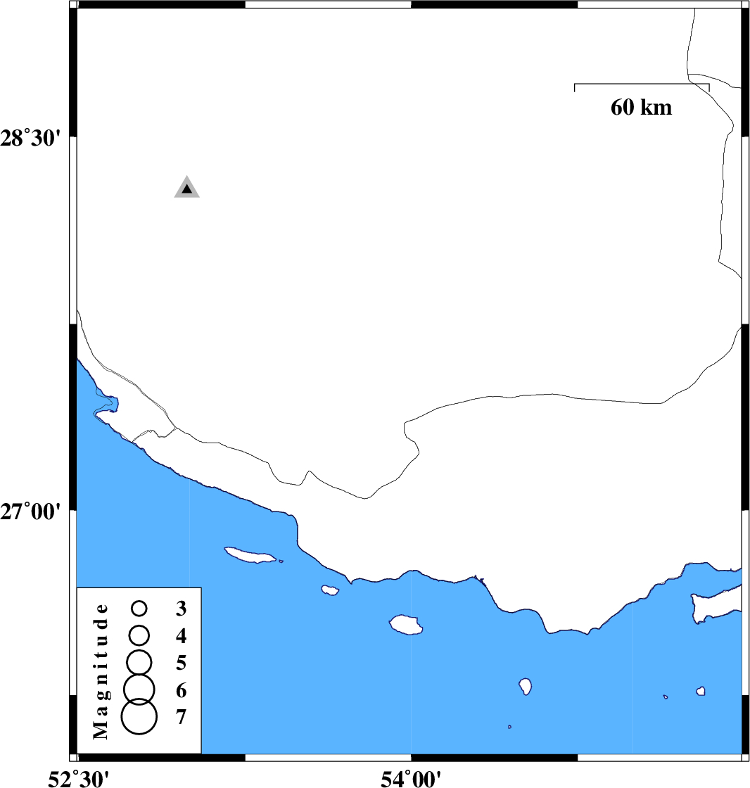 | 2008/10/04 | 23:22:23.5 | 02:52:23.5 | 27.51 | 53.99 | 15 | ML2.9 | 39 km South-West of Lar, Fars Province |