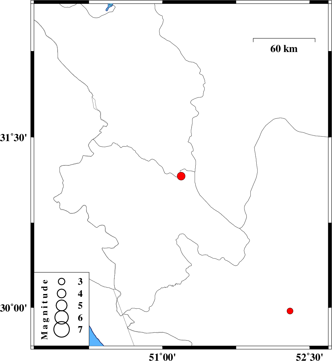 | 2008/10/11 | 06:26:46.7 | 09:56:46.7 | 31.16 | 51.19 | 15 | ML3.6 | 41 km North-West of Sisakht, Kohkiluieh va boyerahmad Province | ||