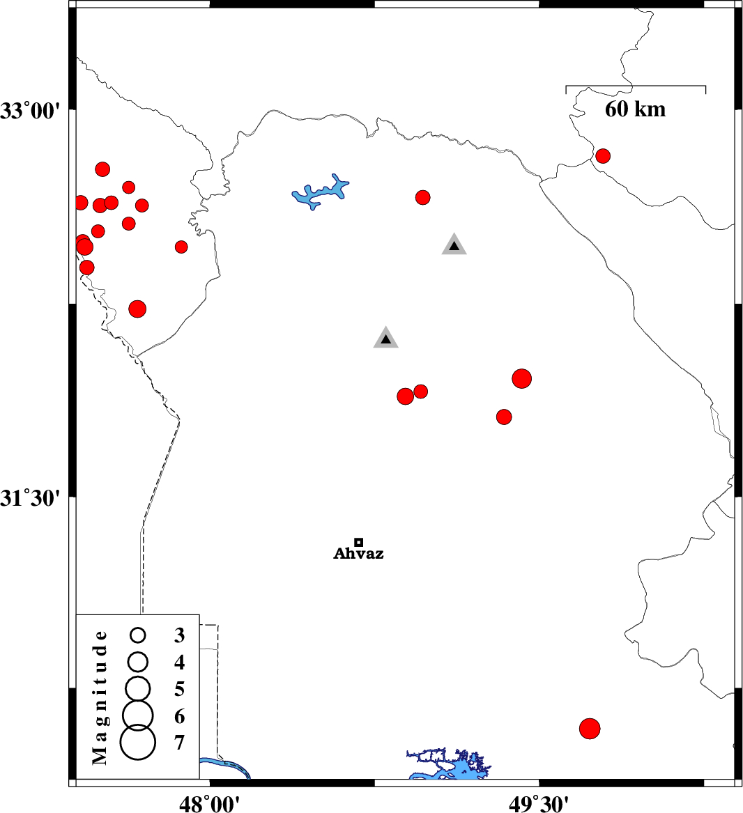 | 2008/10/02 | 20:31:48.7 | 00:01:48.7 | 31.96 | 49.42 | 15 | ML4 | 11 km East of Masjed Soleyman, Khoozestan Province | ||
