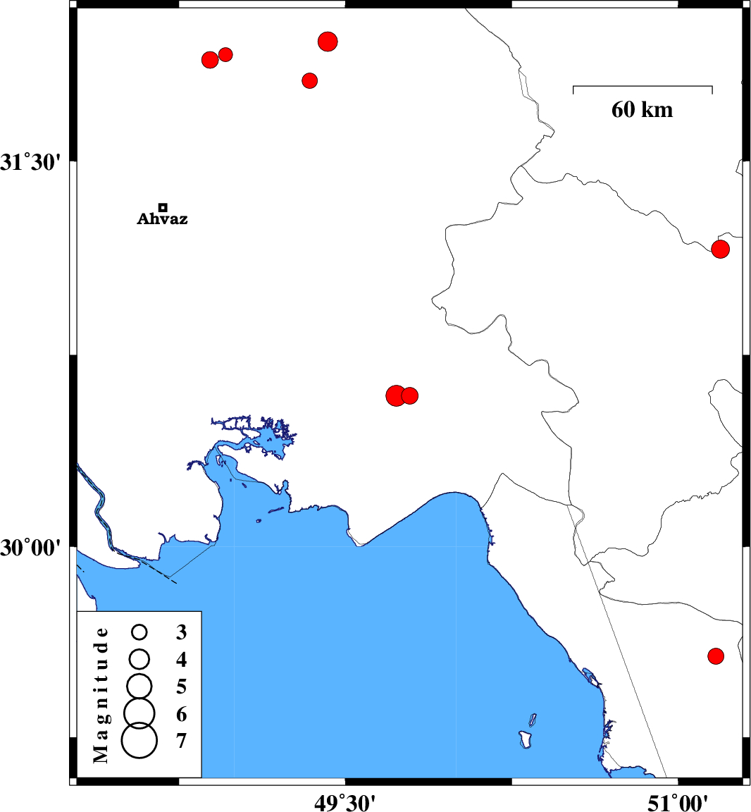 2008/10/12 | 23:15:26.3 | 02:45:26.3 | 31.91 | 48.96 | 8 | ML2.8 | 17 km South-East of Shushtar, Khoozestan Province | ||