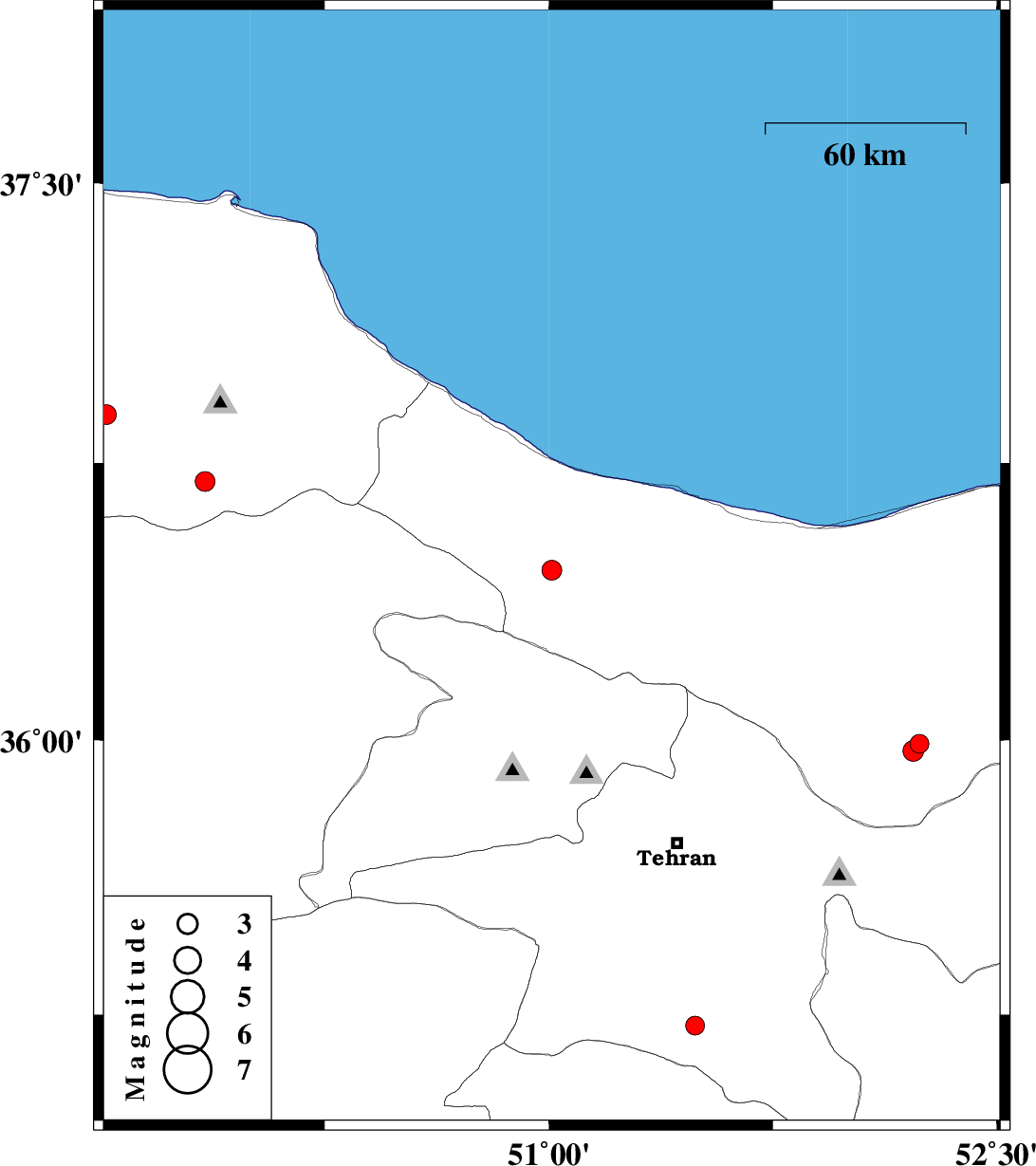 2008/10/04 | 21:53:34.6 | 01:23:34.6 | 35.99 | 52.24 | 7 | ML2.8 | 34 km North-East of Damavand, Tehran Province | ||
