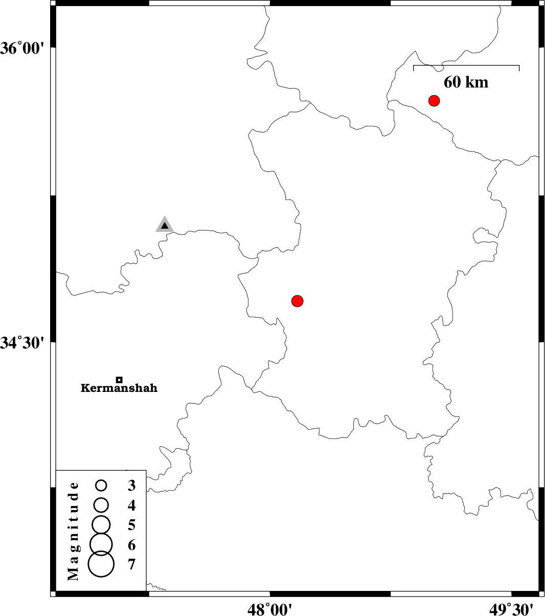 2008/10/19 | 08:24:21.5 | 11:54:21.5 | 34.71 | 48.17 | 14 | ML3.2 | 9 km Asad Abad, Hamedan Province | ||
