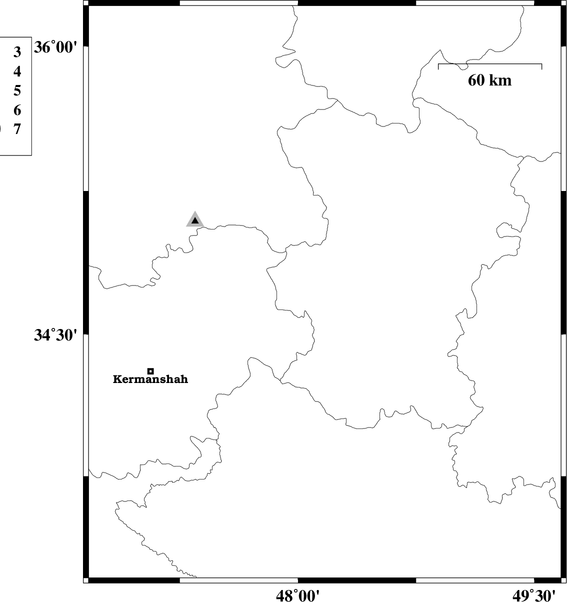 | 2008/10/19 | 08:24:21.5 | 11:54:21.5 | 34.71 | 48.17 | 14 | ML3.2 | 9 km Asad Abad, Hamedan Province | ||