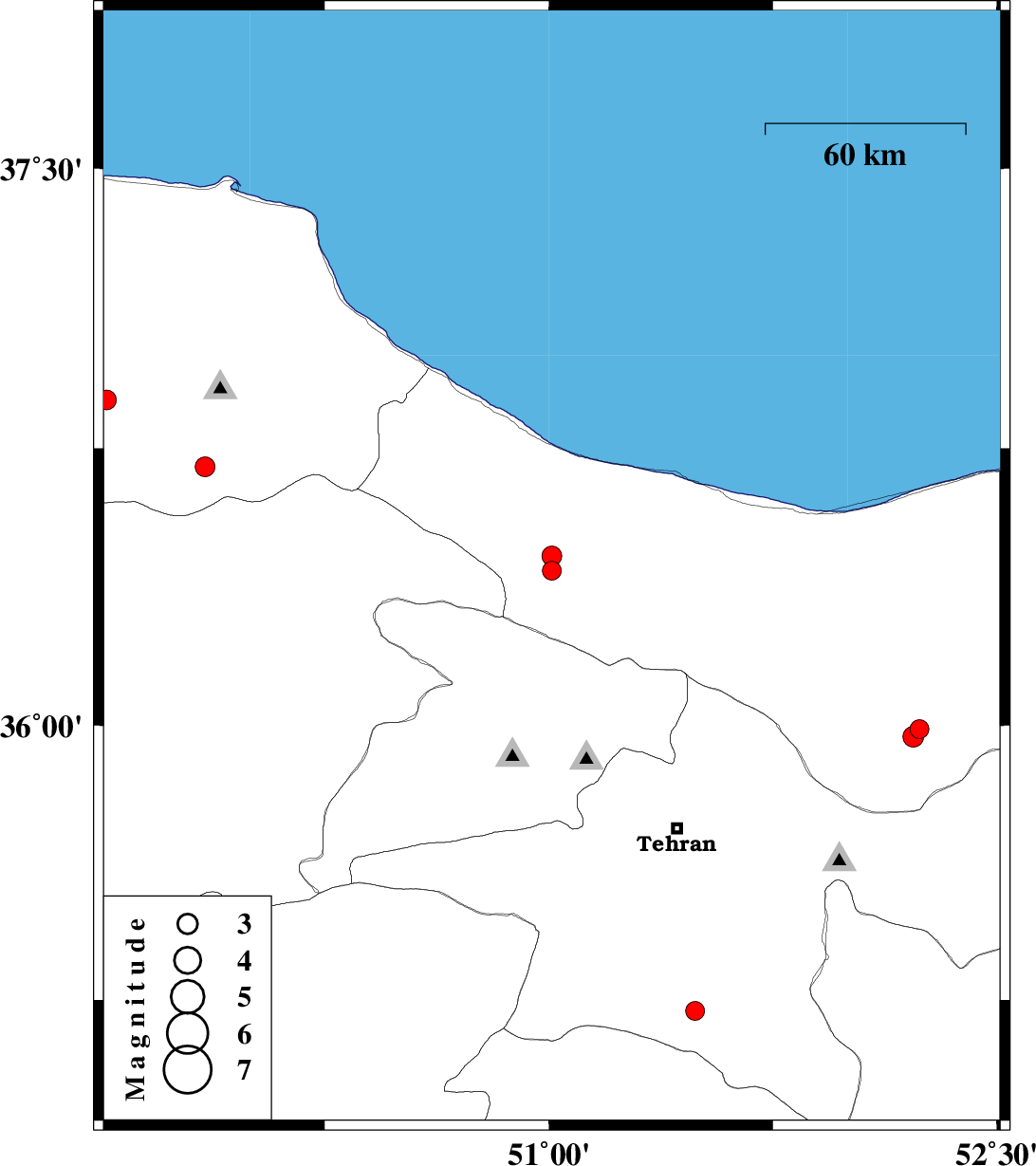 2008/10/04 | 21:53:34.6 | 01:23:34.6 | 35.99 | 52.24 | 7 | ML2.8 | 34 km North-East of Damavand, Tehran Province | ||