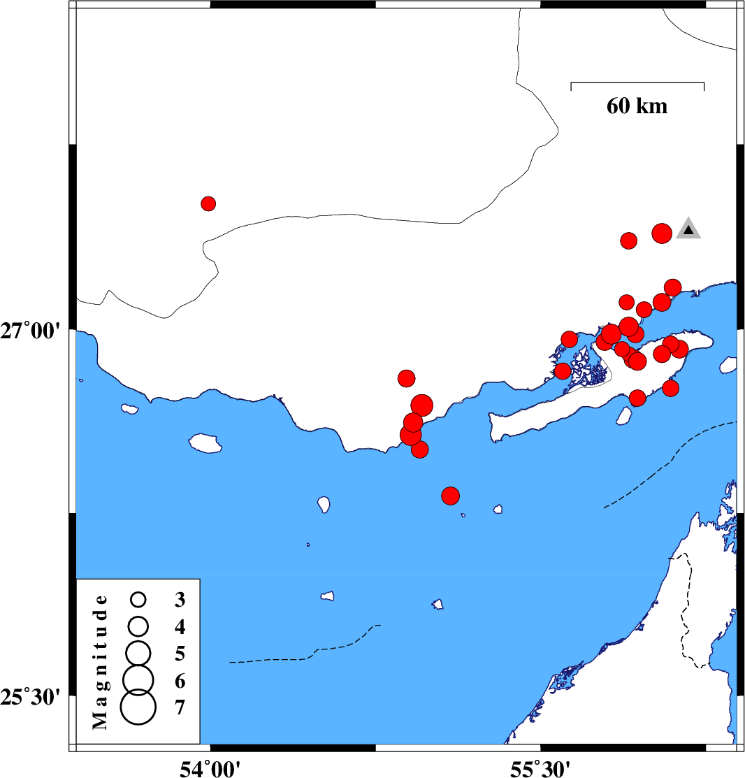 2008/10/05 01:22:43.9 04:52:43.9 27.0855.976 ML3.2 32 km North-West of Qeshm, Hormozgan Province