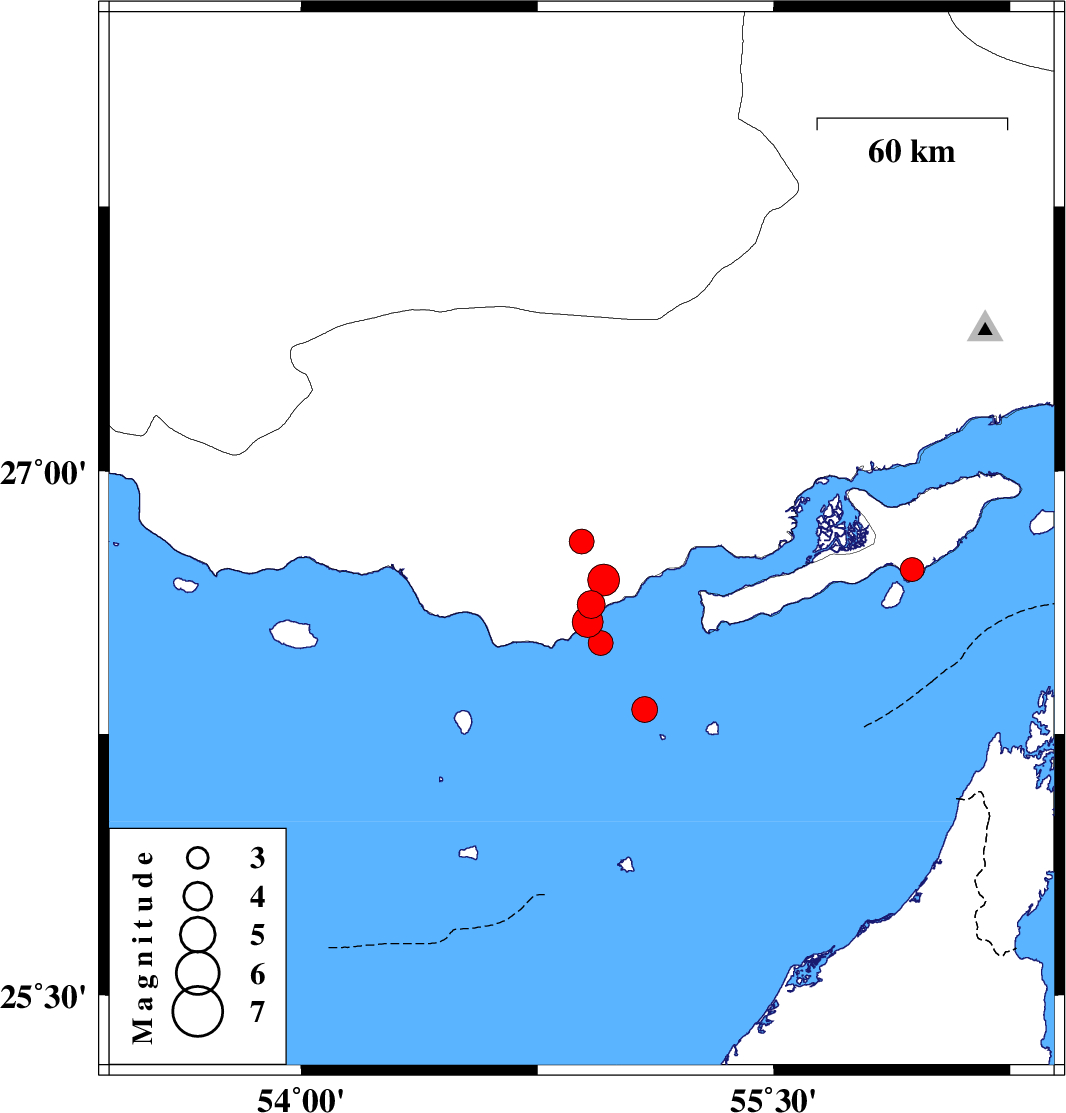 2008/10/21 13:11:05.1 16:41:05.1 26.3255.0946 ML3.7 Persian Gulf, 32 km South-East of Bandar-e lengeh