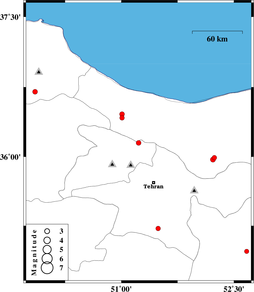 2008/10/21 | 22:23:05.7 | 01:53:05.7 | 36.15 | 51.23 | 12 | ML3 | 43 km North-West of Tajrish, Tehran Province | ||