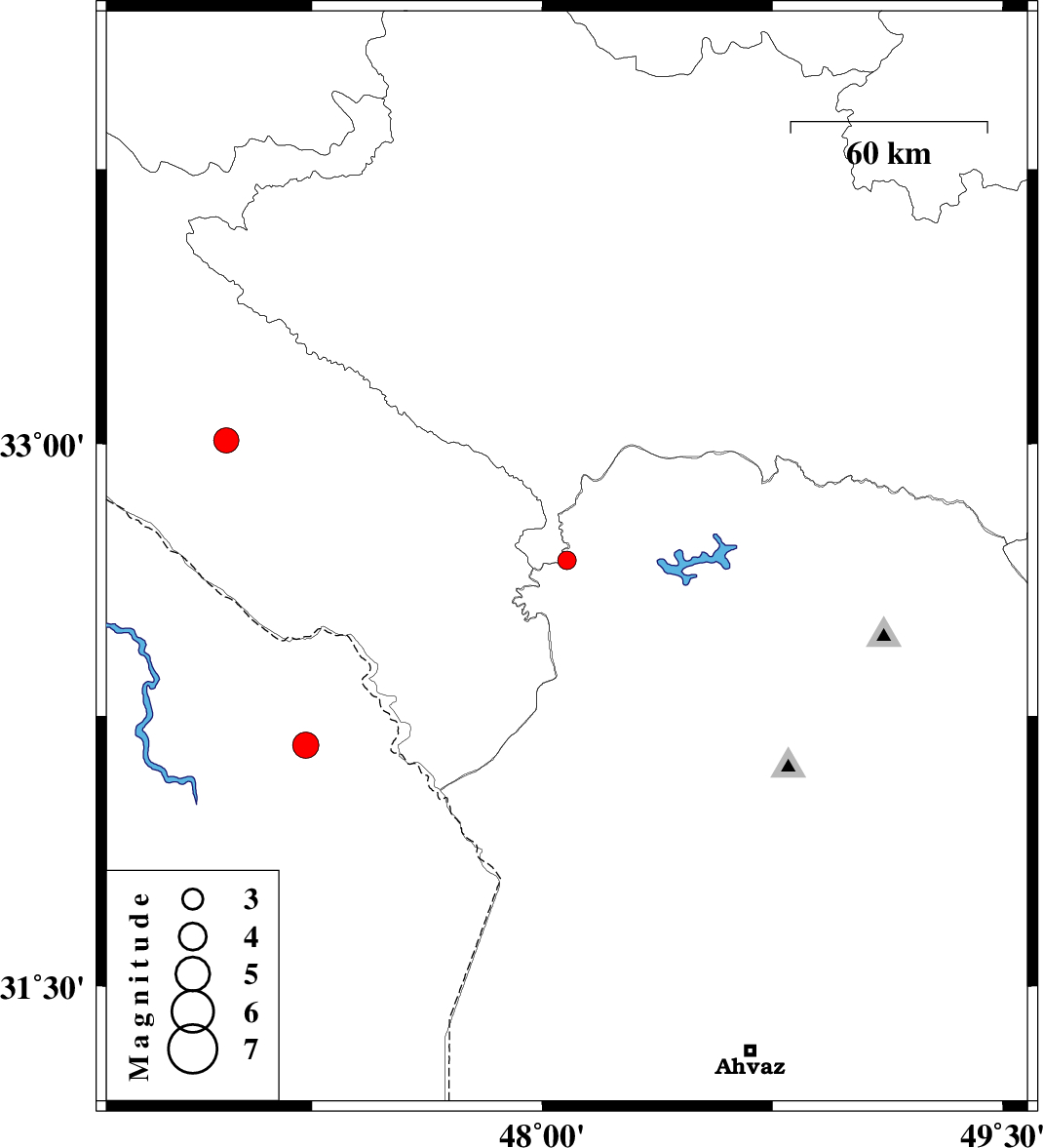 | 2008/10/18 | 23:50:06.1 | 03:20:06.1 | 32.17 | 47.23 | 37 | ML3.8 | 57 km South of Dehloran, Ilam Province |