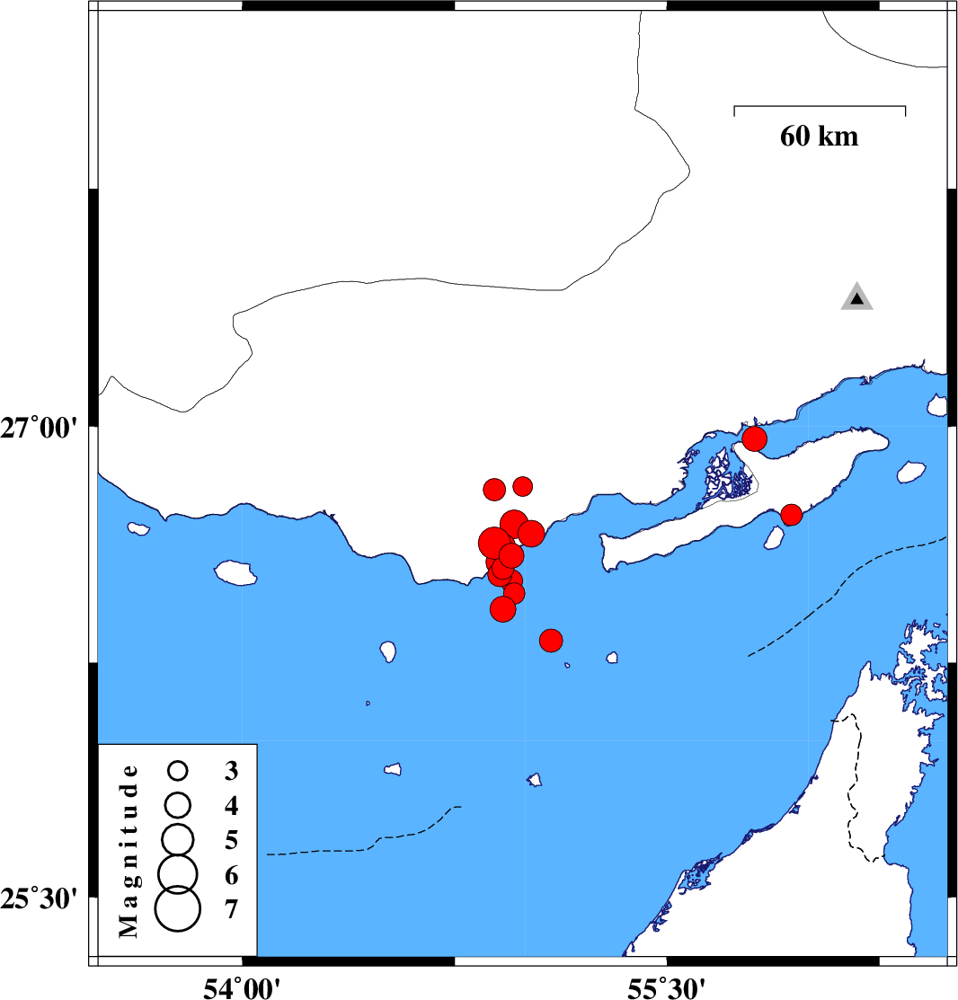 2008/10/25 20:25:16.7 23:55:16.7 26.6655.0214 ML4.2 23 km North-East of Bandar-e lengeh, Hormozgan Province