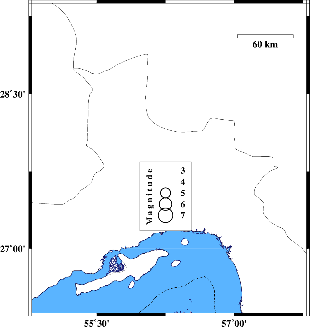 2008/10/25 | 20:17:16.9 | 23:47:16.9 | 26.63 | 54.89 | 14 | ML5.1 | 12 km North of Bandar-e lengeh, Hormozgan Province | ||