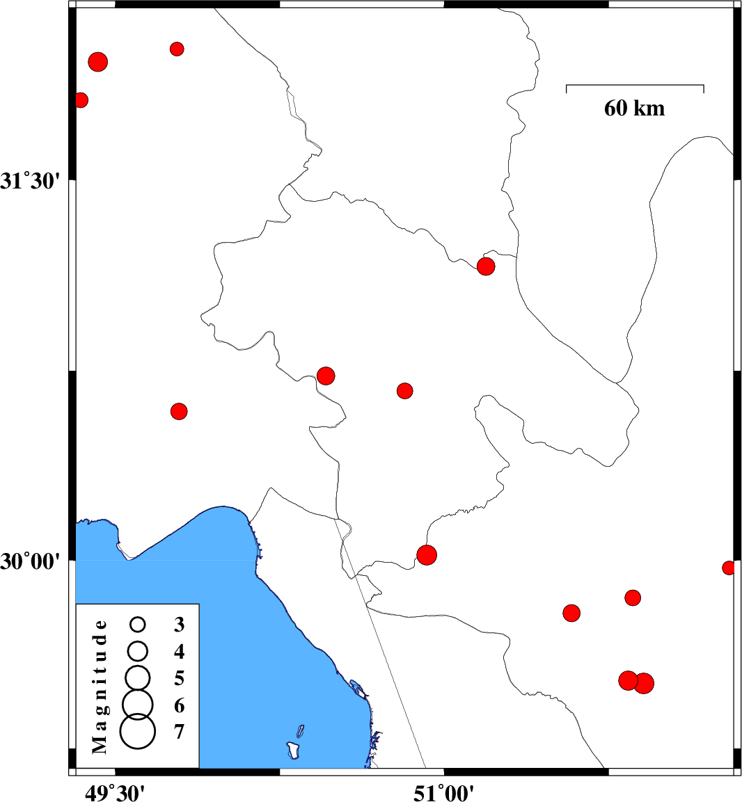 | 2008/10/02 | 20:31:48.7 | 00:01:48.7 | 31.96 | 49.42 | 15 | ML4 | 11 km East of Masjed Soleyman, Khoozestan Province |