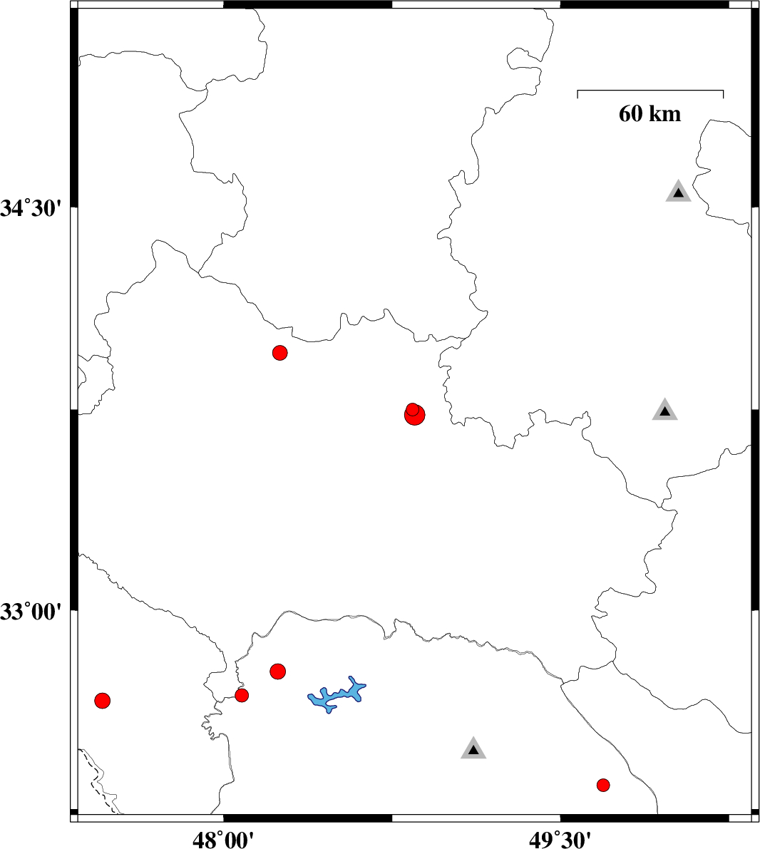 2008/10/29 | 14:23:18.6 | 17:53:18.6 | 33.96 | 48.25 | 18 | ML3 | 11 km Aleshtar, Lorestan Province | ||