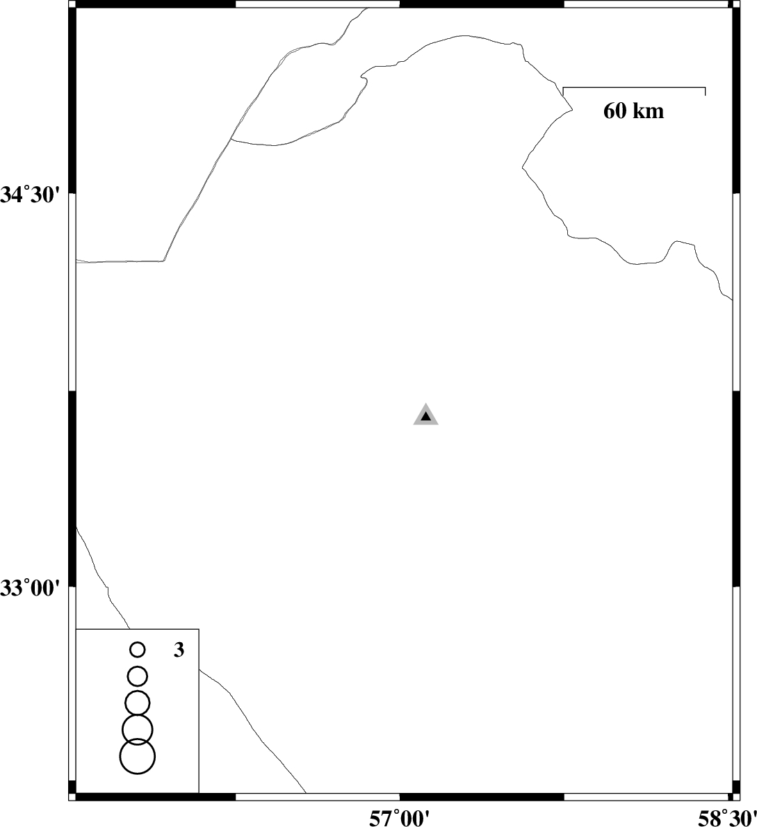 2008/10/30 | 14:26:10.0 | 17:56:10.0 | 33.7 | 57.02 | 17 | ML3 | 14 km North of Tabas, Yazd Province |