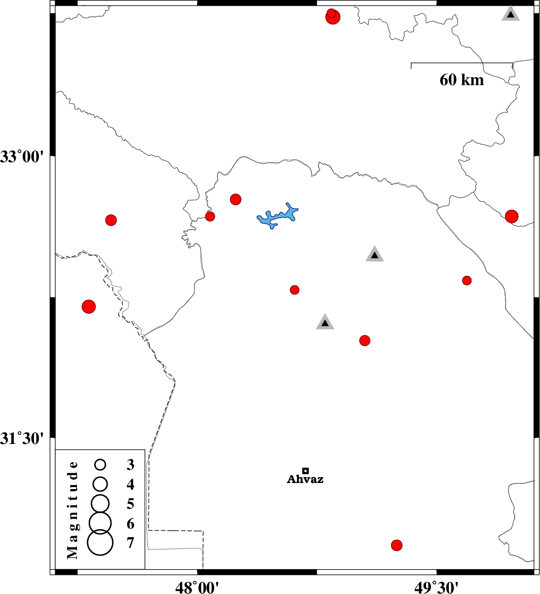 2008/10/27 | 19:46:03.3 | 23:16:03.3 | 32.02 | 49.05 | 14 | ML3 | 18 km East of Shushtar, Khoozestan Province | ||