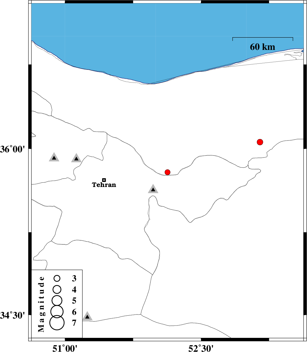 2008/11/14 | 15:22:48.4 | 18:52:48.4 | 35.79 | 52.13 | 14 | ML2.7 | 9 km Damavand, Tehran Province | ||