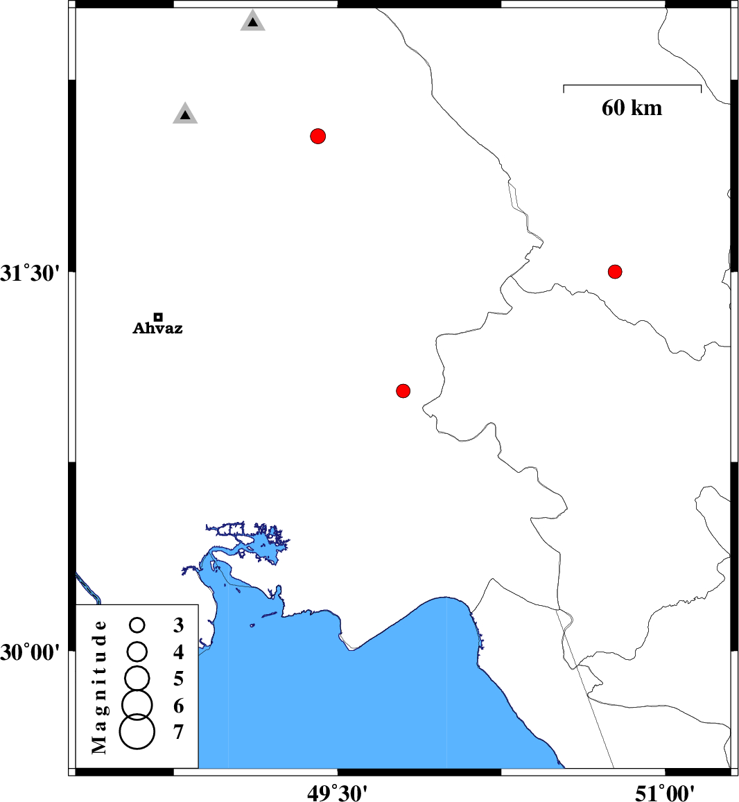 2008/11/15 | 16:33:26.5 | 20:03:26.5 | 31.03 | 49.8 | 39 | ML2.8 | 31 km North of Omidiyeh, Khoozestan Province | ||