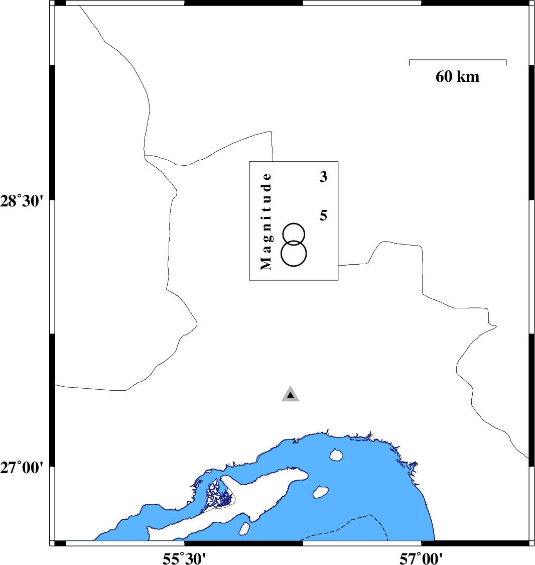 2008/11/25 03:18:01.5 06:48:01.5 28.0656.3115 ML3.4 49 km South-East of Hajiabad, Hormozgan Province