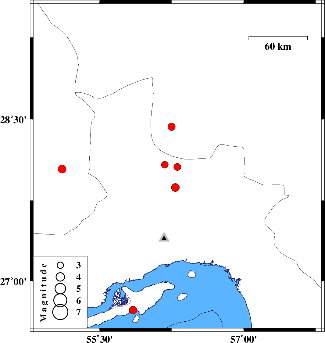 2008/10/26 | 00:37:38.7 | 04:07:38.7 | 27.87 | 56.29 | 14 | ML3.8 | 62 km South-East of Hajiabad, Hormozgan Province |