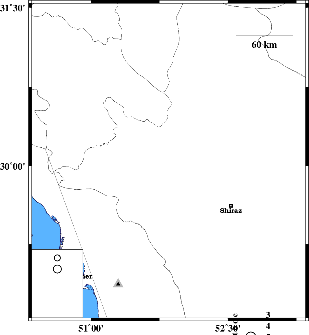 2008/11/25 | 22:13:17.7 | 01:43:17.7 | 30.04 | 51.85 | 15 | ML4.5 | 27 km South-West of Ardakan, Fars Province |
