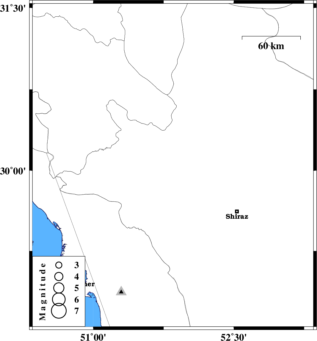 | 2008/11/25 | 22:13:17.7 | 01:43:17.7 | 30.04 | 51.85 | 15 | ML4.5 | 27 km South-West of Ardakan, Fars Province |