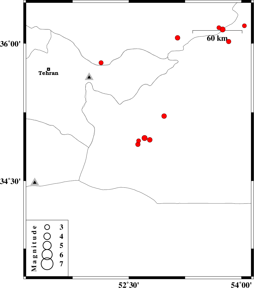 2008/11/27 23:57:01.5 03:27:01.5 34.9752.7146 ML3.3 43 km South-East of Garmsar, Semnan Province