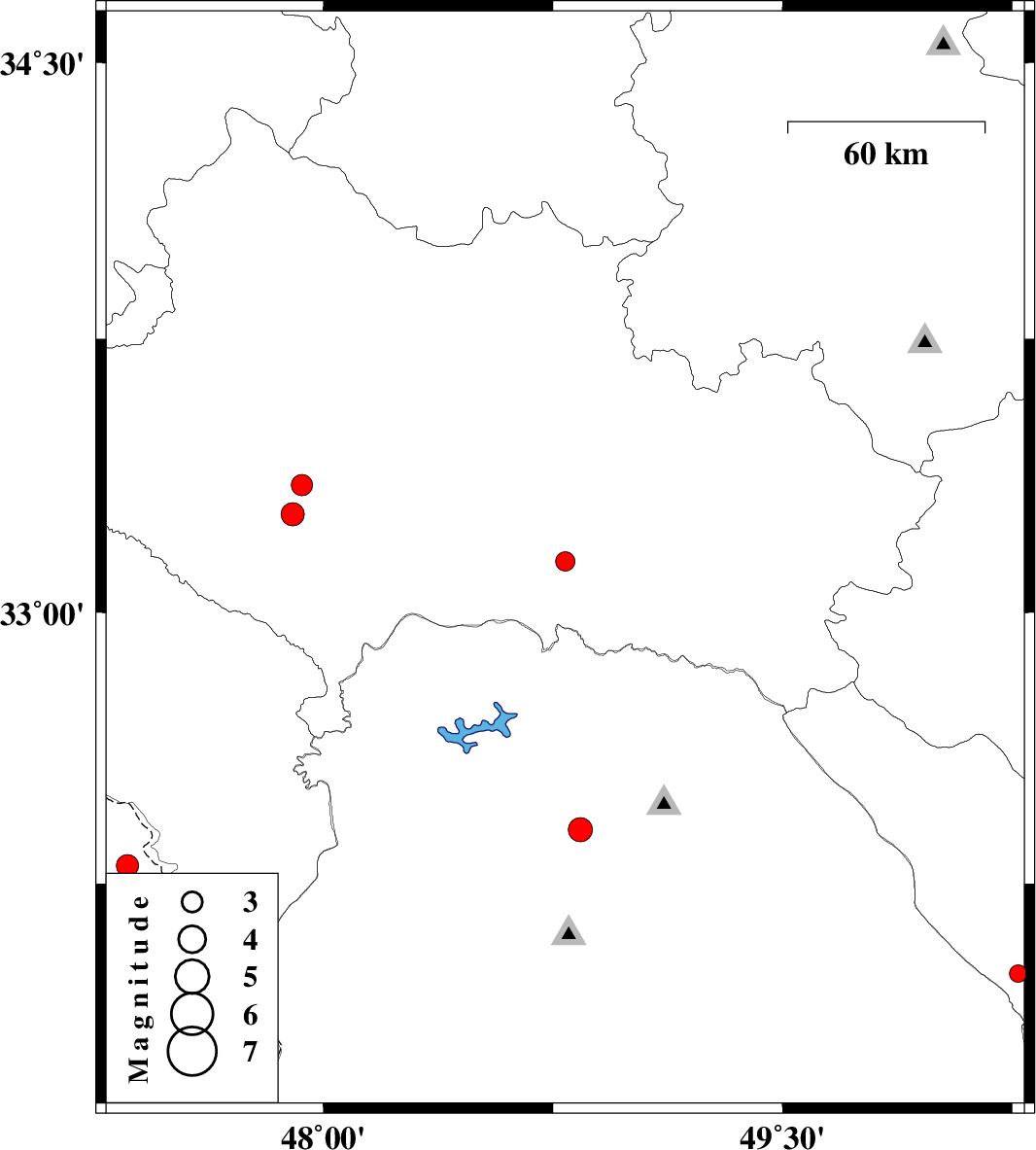 2008/11/29 | 22:13:20.8 | 01:43:20.8 | 33.14 | 48.79 | 15 | ML2.8 | 46 km South-West of Dorud, Lorestan Province | ||