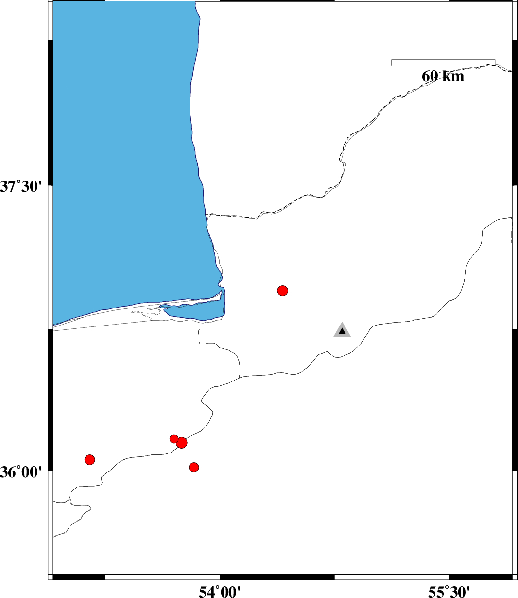 2008/11/30 | 02:55:19.0 | 06:25:19.0 | 36.95 | 54.41 | 14 | ML3.1 | 8 km Aq Qaleh, Golestan Province | ||