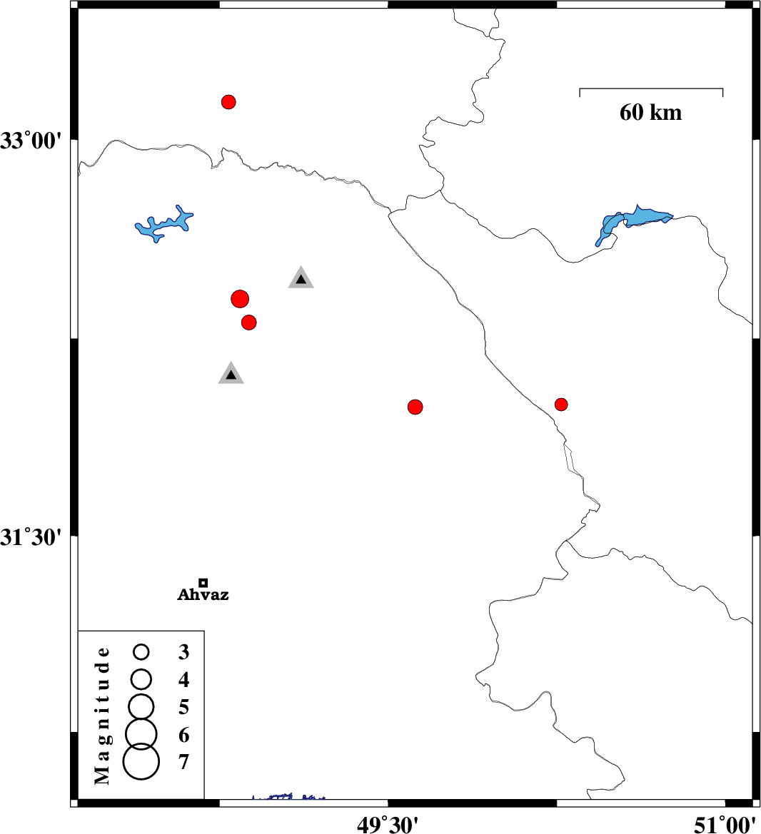 2008/11/28 | 04:56:06.9 | 08:26:06.9 | 32.4 | 48.84 | 28 | ML3.5 | 25 km West of Lali, Khoozestan Province | ||