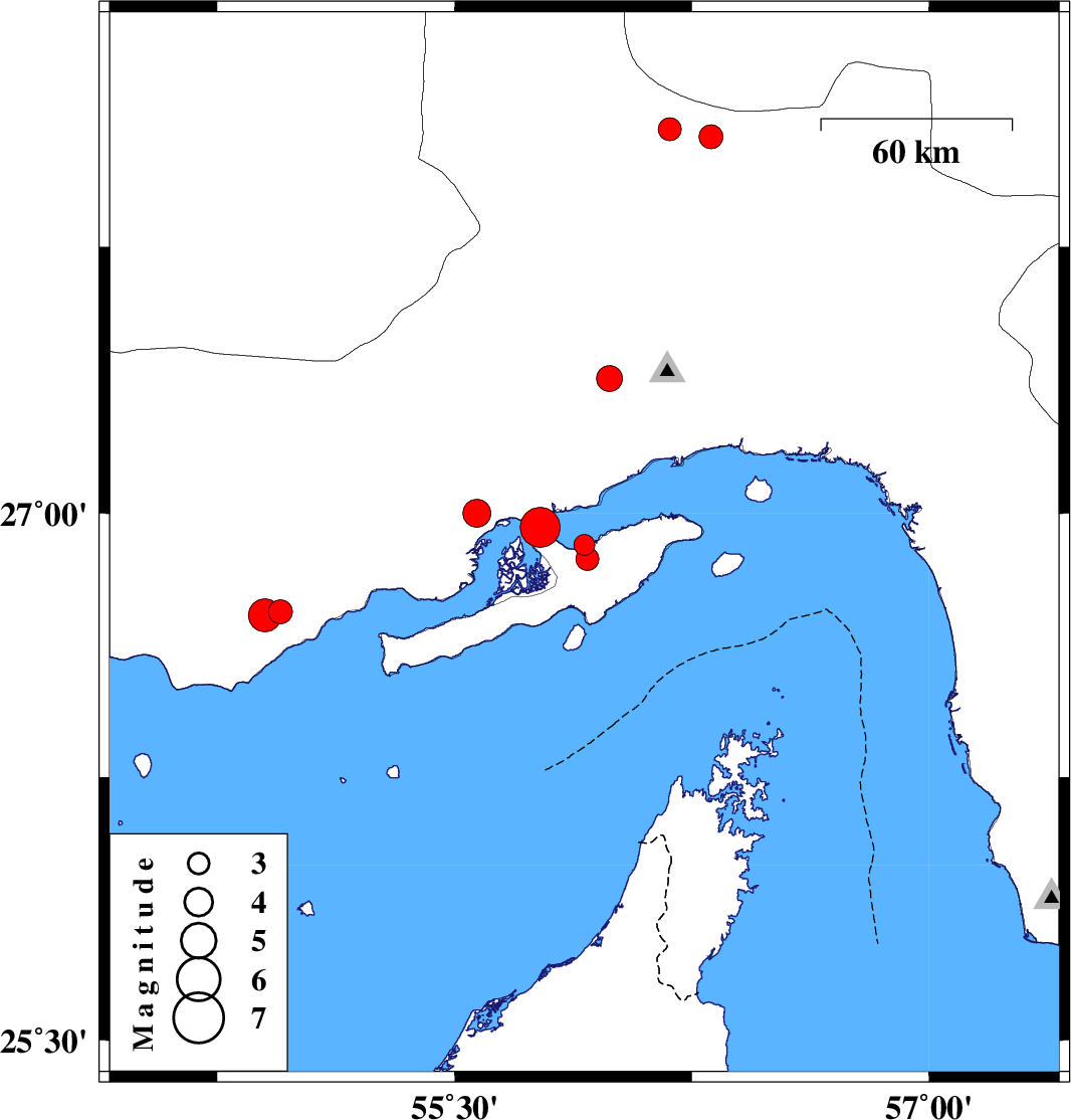 2008/12/07 | 16:22:08.4 | 19:52:08.4 | 26.91 | 55.91 | 3 | ML3 | Persian Gulf, 35 km West of Qeshm | ||