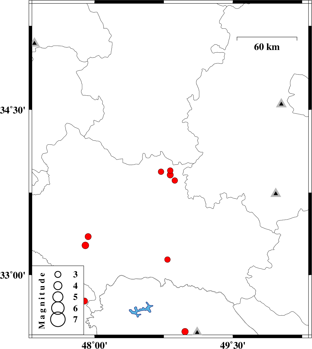 2008/11/07 | 08:39:25.2 | 12:09:25.2 | 32.76 | 47.89 | 14 | ML3.1 | 44 km South-East of Abdanan, Ilam Province |