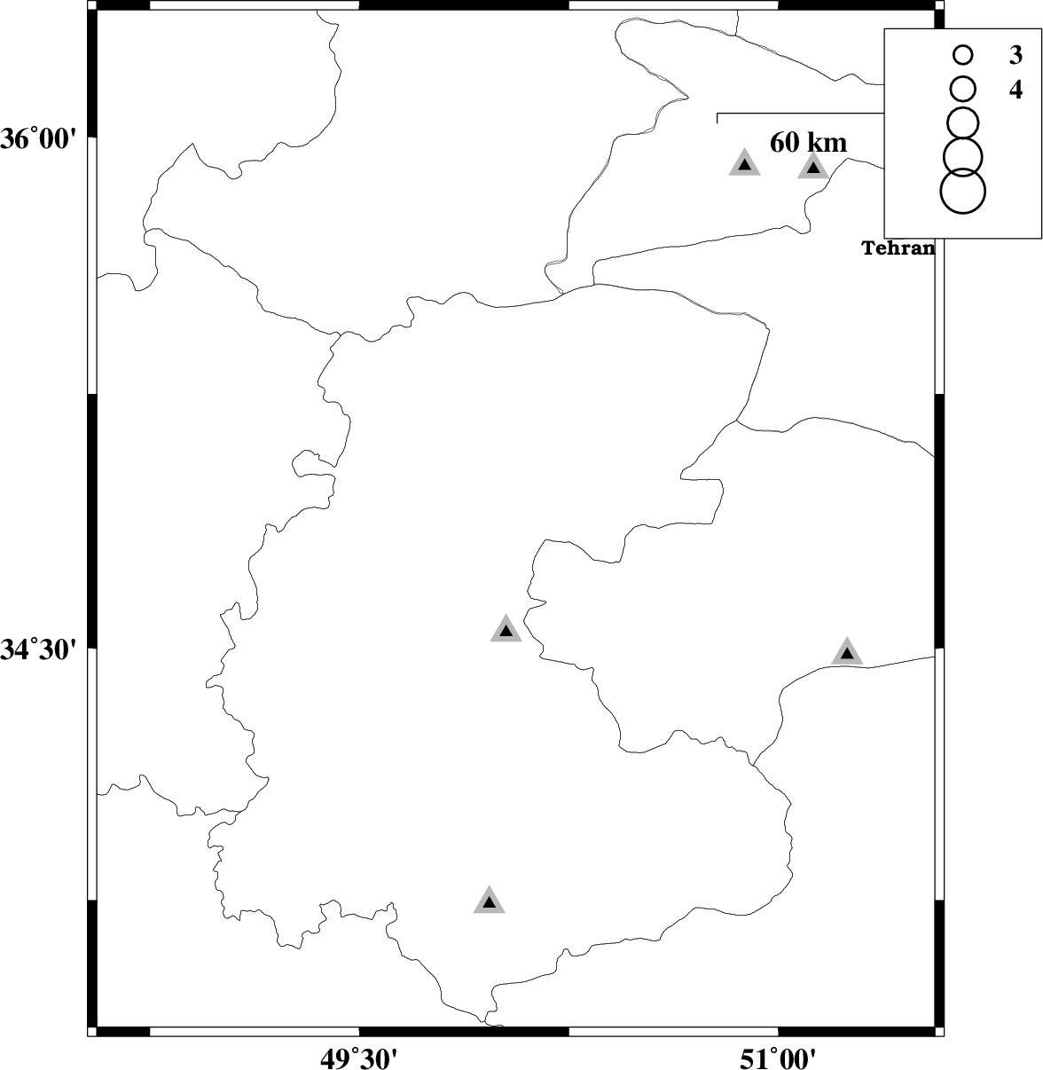 2008/11/28 | 04:45:59.5 | 08:15:59.5 | 34.83 | 50.74 | 37 | ML2.9 | 23 km North-West of Qom, Qom Province | ||