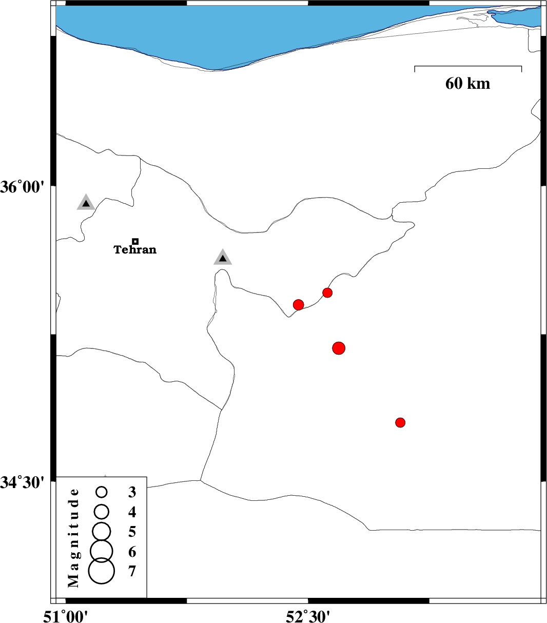 2008/12/16 | 14:02:10.3 | 17:32:10.3 | 35.18 | 52.69 | 14 | ML3.5 | 32 km East of Garmsar, Semnan Province | ||