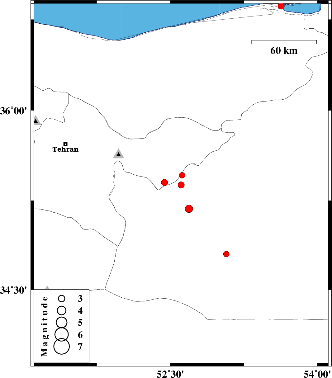 2008/12/27 | 03:15:17.9 | 06:45:17.9 | 36.86 | 53.63 | 15 | ML3 | Caspian Sea, 20 km North of Behshahr | ||