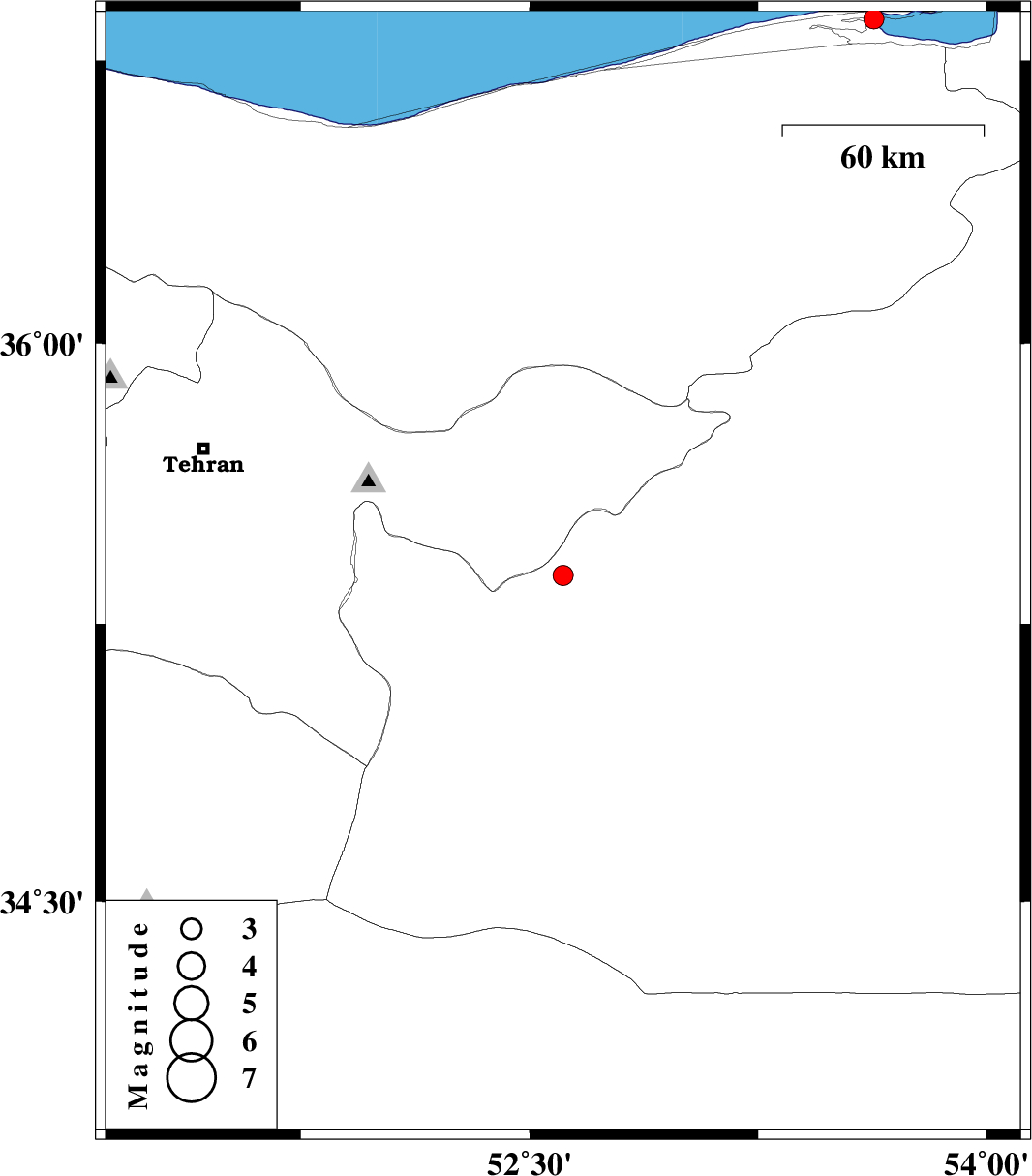 2009/01/02 | 04:13:16.0 | 07:43:16.0 | 35.38 | 52.61 | 15 | ML2.9 | 30 km North-East of Garmsar, Semnan Province | ||