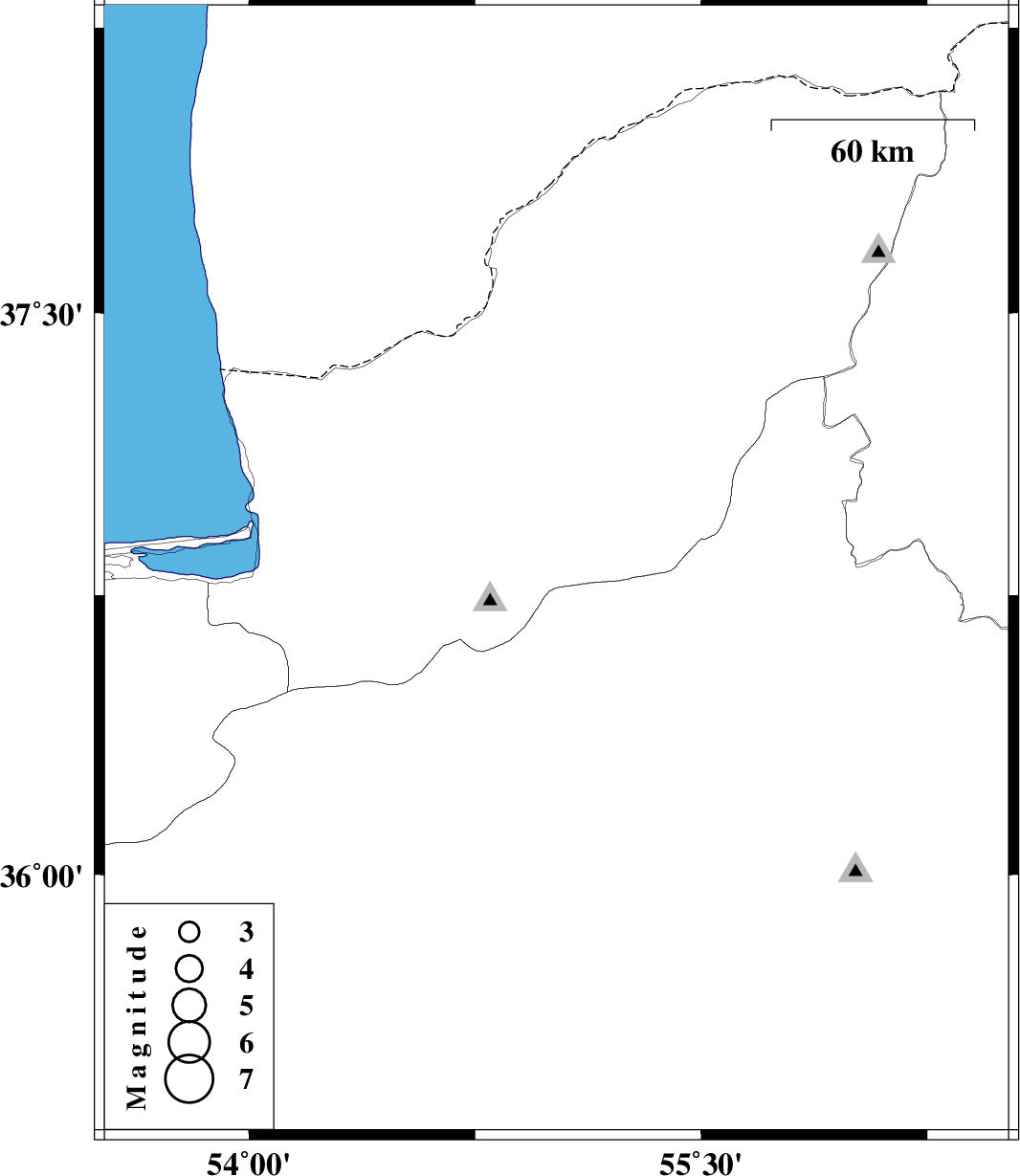 2009/01/20 | 12:46:07.9 | 16:16:07.9 | 36.81 | 55.02 | 14 | ML3.7 | 17 km East of Ali Abad, Golestan Province |