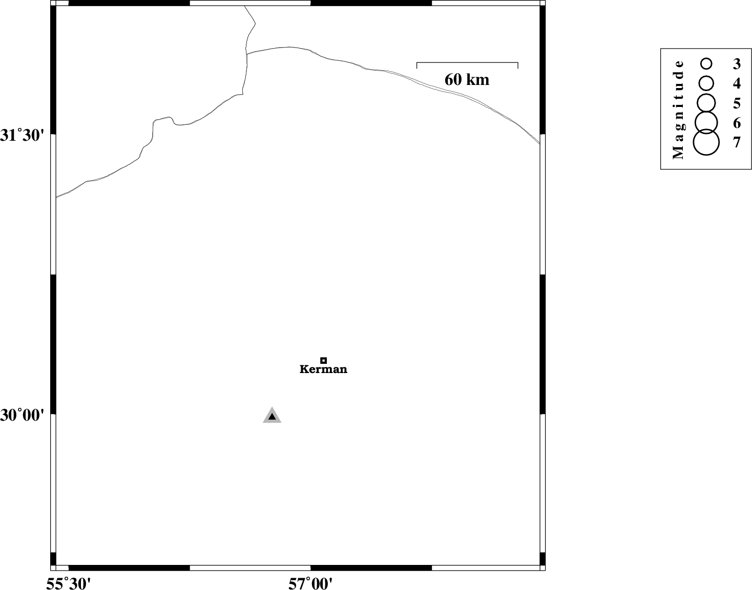 2009/01/23 | 16:27:01.2 | 19:57:01.2 | 30.68 | 56.92 | 44 | ML2.9 | 36 km South-East of Zarand, Kerman Province | ||